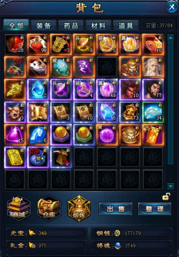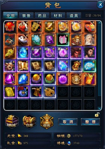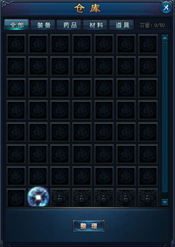 点击【整理】按钮,物品会按需自动排列,重复的道具会自动叠加。