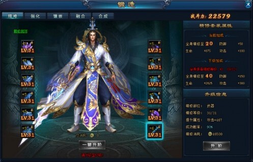 装备系统分为四大功能:装备精修、装备强化、宝石镶嵌、装备融合、宝石合成
