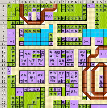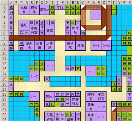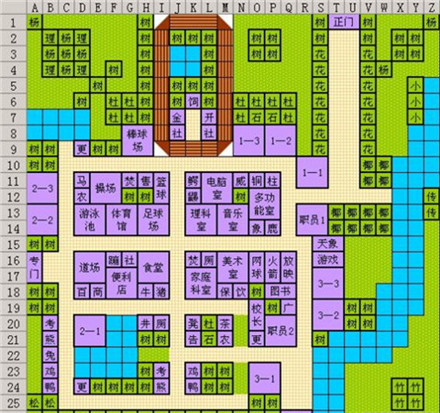 家用游戏机部 :理科教室+长椅+长颈鹿小屋+白杨+映山红