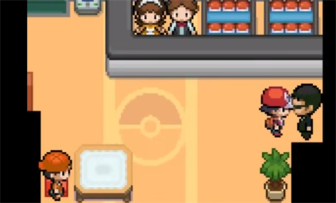 2、进入宝可梦中心后,直接上二楼,与最里面的黑色西服npc对话。