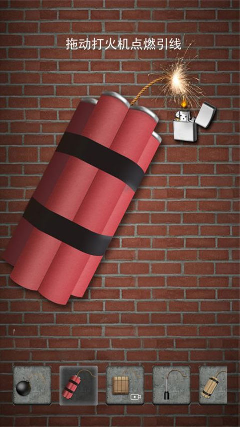 2、引爆炸弹只需要拖动打火机点燃引线即可。