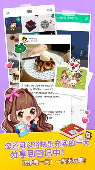 2、释放你的想象力:LINE PLAY让你可以尽情展现自我。你能自由布置个人房间的室内风格,还能为自己的人偶搭配时尚服饰。现在你能从两千多项物品里打造专属的个人空间和人偶形象!