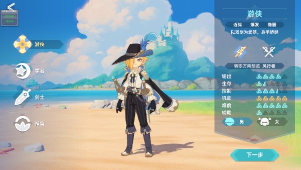 游侠:近战物理输出职业。以双剑为武器,机动性高,爆发高。上手难度:5颗星。