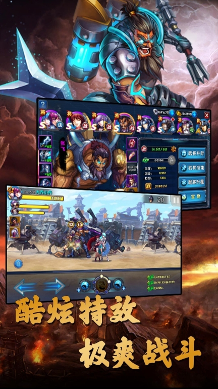5、三国名将,震撼登场!把你钟爱的武将精心培养至巅峰,助其蜕变为神将,其威力足以惊天地、泣鬼神,让你尽情体验一夫当关、万夫莫开的酣畅战斗快感。