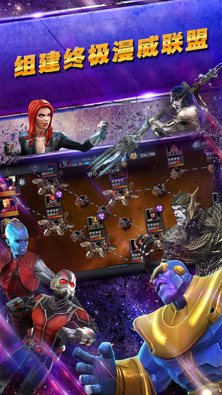 收集,升级,并根据漫威漫画情节中的人物关系,妥善地安排队伍中的英雄和反派成员来获得队友加成;