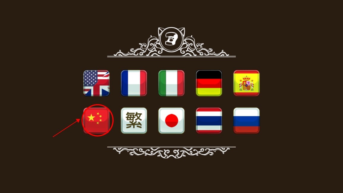 - 选择中国的图标以设置游戏语言为中文。