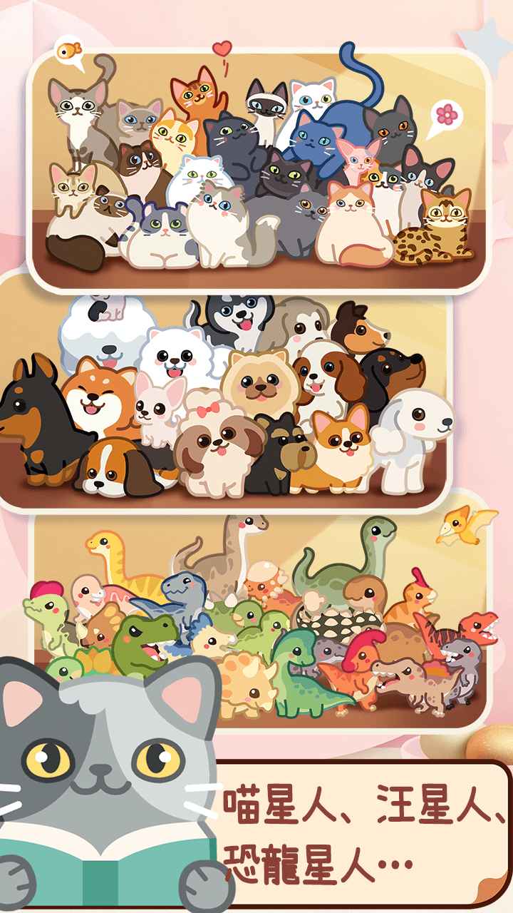 这是一款合成放置类游戏,玩家能够探索各类动物主题,解锁更多萌趣宠物来进行合成。游戏内有数百只可爱动物,玩家可以着手打造专属收藏,灵活运用不同方式开展合成操作。多样化的角色设定提升了游戏难度,为游戏增添了更多挑战,同时还有众多趣味关卡可供玩家自由选择挑战。