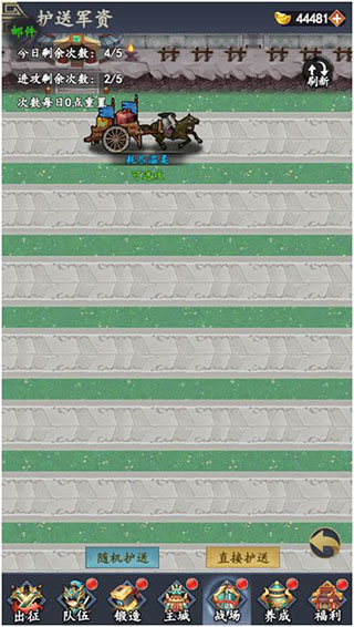 每日有5次免费护送机会,既可以选择随机护送,也能选择元宝护送,要是刷新出【巨型军资】,收益会特别丰厚!此外还能结交其他队伍,或者对他人的镖队进行劫镖,策略性非常强。