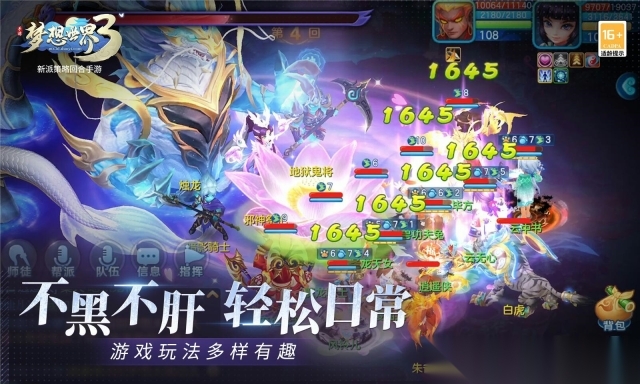 《梦想世界3》延续“梦想世界”系列15年的经典内核,保留其标志性的策略回合制战斗系统——猛、巧、普三系招式相互克制,精准预判即可释放出华丽的技能连招;招式动作经过细致打磨,技能打击感十足,为你带来别具一格的战斗体验;日常任务简单易上手,利用碎片化时间就能轻松完成;每周固定时段开启的周常活动,邀请默契战友共同挑战圣灵、探索梦境,更有多样PVP玩法等待你的参与。