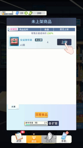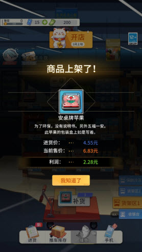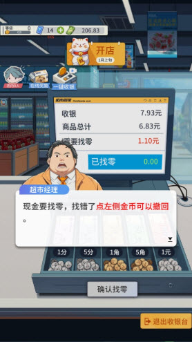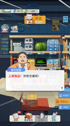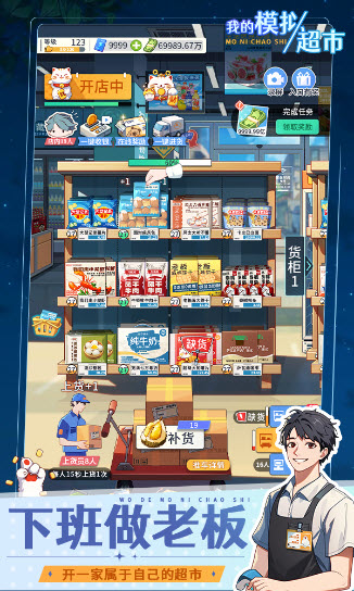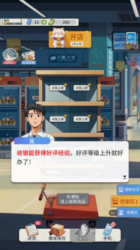 游戏的玩法和操作都十分简单,玩家只需扮演超市老板,负责超市的供货、收银等经营事务来赚取收益即可。