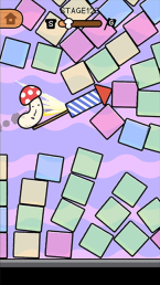 3、玩家需滑动游戏屏幕以让蘑菇飞起来,如此才能实现蘑菇的跳跃,甚至使其贴附在不同障碍物上,进而得以继续跳跃,玩家要瞄准目的地持续前进。