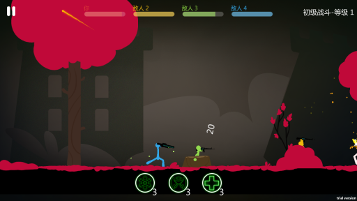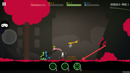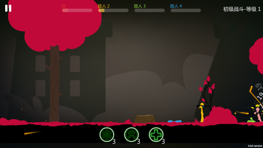 1、格斗动作流畅度高:火柴人在攻击、闪避与技能释放时的动作衔接自然顺畅,触发连招时会同步呈现简洁的光影特效,既能让玩家获得爽快的操作体验,又能突出横板格斗所特有的利落风格。