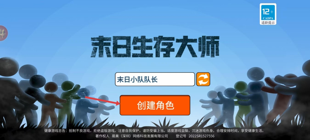 1、进入佳作后,输入名称末日小队队长,点击创建角色按钮,完成角色创建,进入佳作主界面。