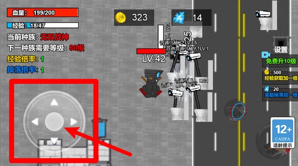 3.左下角的虚拟摇杆控制角色移动,滑动方向即可操控角色走位,在战斗中灵活操作是生存的关键。