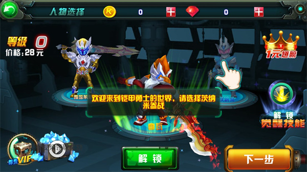 1、可自由挑选拿瓦、茨纳米这类经典铠甲,施展专属的光影必杀技,体验合体变身带来的震撼特效;