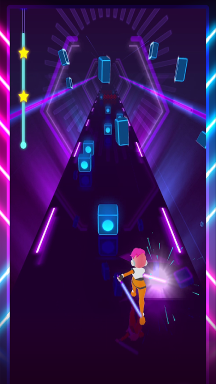 《节奏光剑3D》 这是一款极度考验玩家指尖操作快感的节奏闯关游戏。在游戏里,玩家需要依据自身实力持续冲刺前进,面对关卡中的各类障碍物时切勿慌乱,不然很容易导致闯关失败。此外,游戏内还配备了大量实用道具,能助力大家顺利挑战,帮助你抵达胜利的终点。游戏中收录了数百首动感十足的音乐曲目,玩家可以自由选择挑战,看看自己能斩获多高的分数。