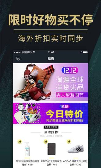 男人帮折扣商城能实时同步海外商品折扣信息,商品均来自国外及二十多家海外合作渠道,像亚马逊、6pm、ASOS、East Dane等都包含在内;每天,专业选品团队会从各大平台筛选出上百件商品,经过风格定位与分类后才会上线,而且目前平台提供独家关税补贴,让大家能以更实惠的价格挑选心仪商品。