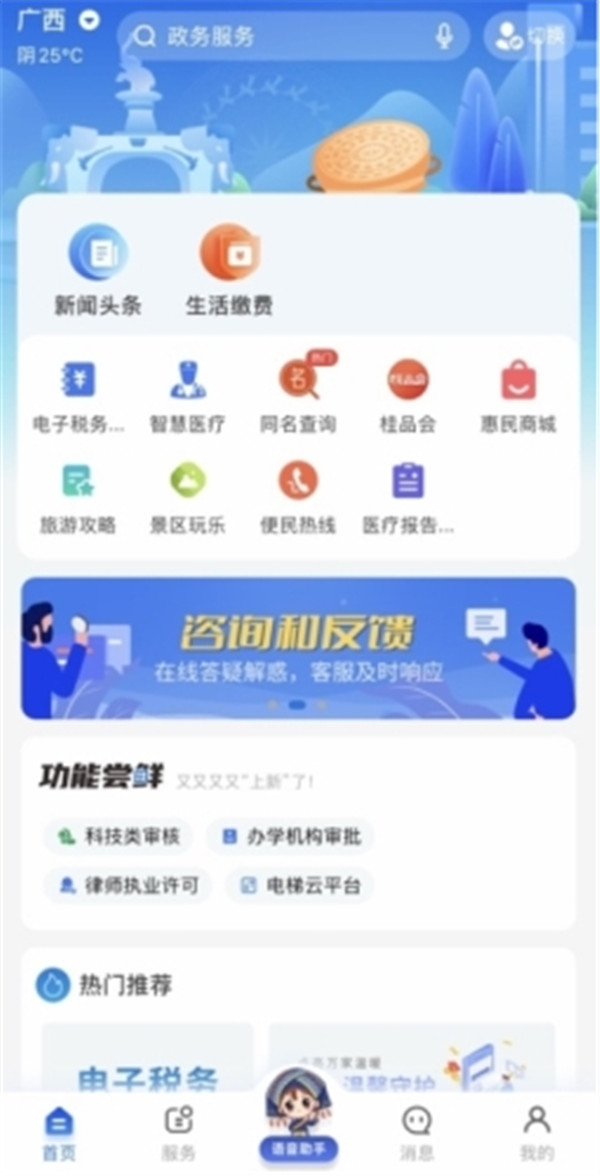 智桂通手机客户端是广西壮族自治区打造的一站式政务服务平台,整合了政务、医疗、企业、便民等各类功能。该平台界面简洁清爽,操作简单易行,配备智能助手帮助用户查询信息,目前已上线53项高频服务,涵盖政务办理、乡村振兴、医疗挂号、企业申报等多个方面,成为广西居民日常生活办事不可或缺的工具。