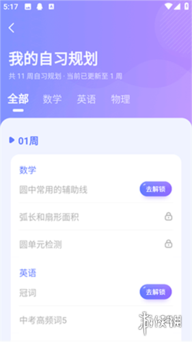 7、借助“完整规划”视图,能够查看涵盖初三全学科内容的系统化学习路径,科学合理的学习规划能有效提高知识掌握的效率。