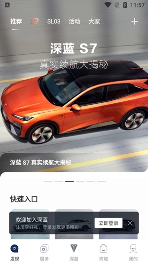 深蓝汽车专为各位车主精心打造了深蓝汽车这款汽车服务软件。在这儿,你能随时随地获取更多资讯,与车友们畅快互动,还能参与各类丰富多彩的车友活动,甚至可以线上订购自己心仪的爱车。有需求的用户,赶快到本站来吧!