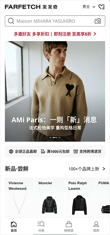 FARFETCH发发奇作为一款跨境时尚购物应用,用户无需出门就能选购到全球各地的时尚单品。此外,平台覆盖的商品类别十分丰富,涵盖服装、包袋、配饰、首饰、腕表以及生活类产品等,足以满足用户多元化的购物需求。