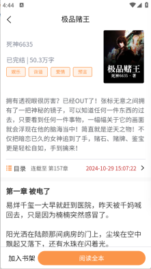 1、打开想看的小说进入详情页,点击“加入书架”。