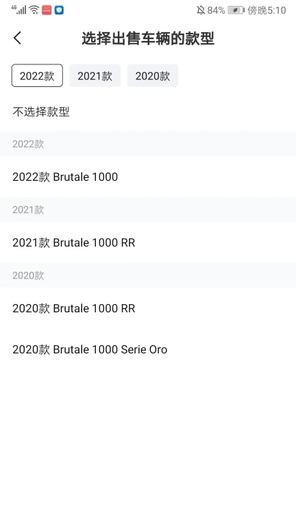 5、接着选择出售车辆的年代款;