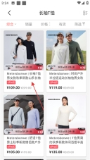 2在商品分类页面,挑选自己喜欢的分类(比如潮流街头类目下的长袖T恤),就能进入长袖T恤的商品列表页面。