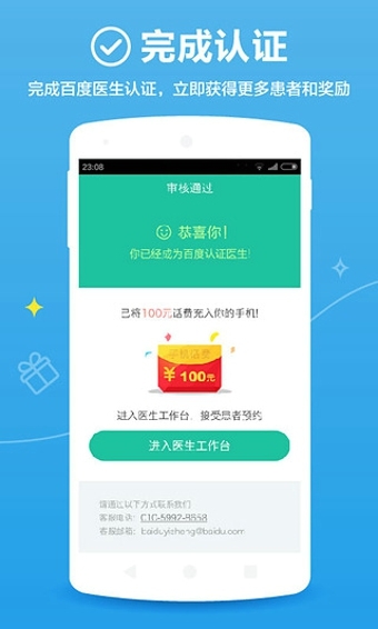 2、通过手机、电脑等多平台推广百度认证医生,助力你获取更多患者预约机会;
