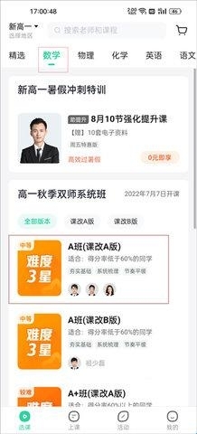 1、打开软件后,找到你想购买的课程所属的分区版块并进入,比如你想购买数学课程,就进入数学课程的分区版块。