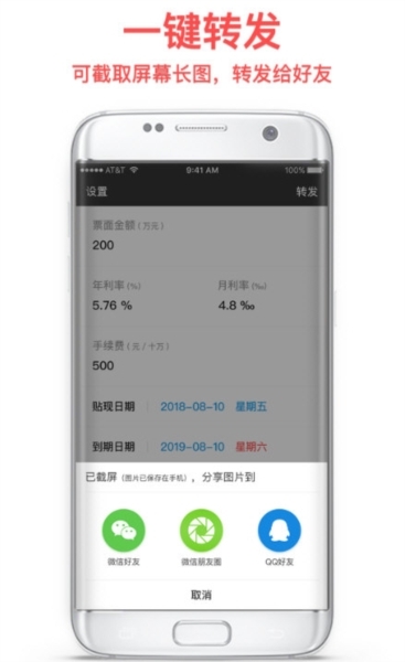 3、将票据贴现计算结果和给客户的留言截屏发给对方;