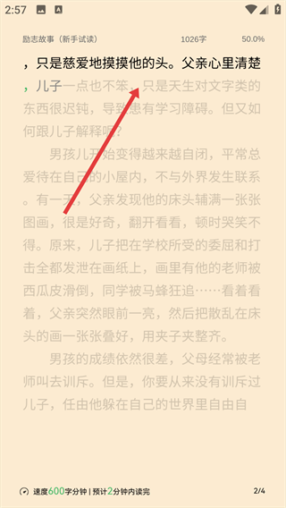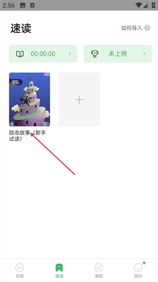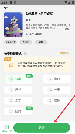 2在速读界面,选择“励志故事(新手试读)”这一内容,随后进入其详情页面。