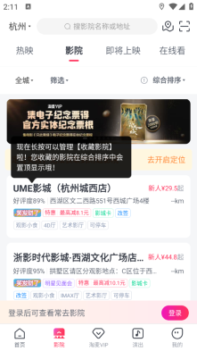 首先打开淘票票,选择常去的一家影院
