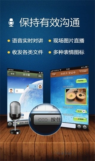 4、多人实时聊天、语音对讲、图片分享,助您与同事或朋友轻松自在地沟通,瞬间拉近彼此距离。