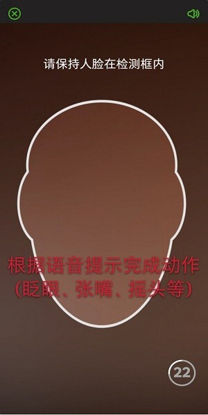 根据语音和画面引导,完成眨眼、张嘴等指定动作,系统会自动采集人脸信息。