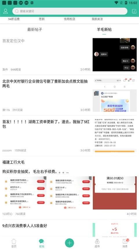 5、点击论坛板块,就能查看最新发布的帖子以及各类羊毛新帖;除此之外,软件里还藏着不少实用功能,等待用户亲自去探索体验!