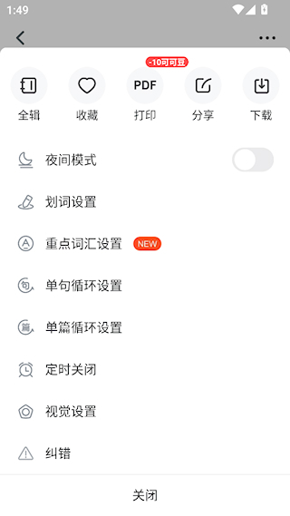 3、点击右上角按钮,可以进行划词、循环等多种设置