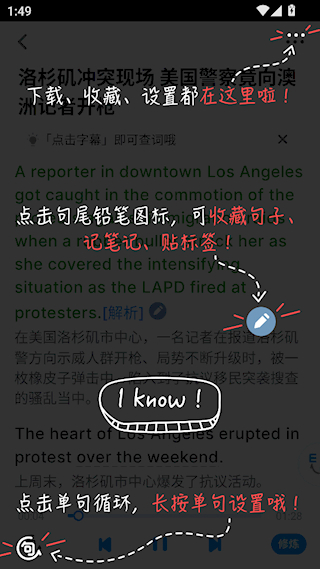 3.训练模式丰富多样:听力板块设有单句循环、九宫格游戏等形式,口语板块则配备了AI教练、跟读评分等多种功能。