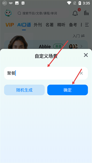 2、在输入框内填写目标场景,待内容确认无误后,点击“确定”按钮,系统便会生成对应的练习任务。