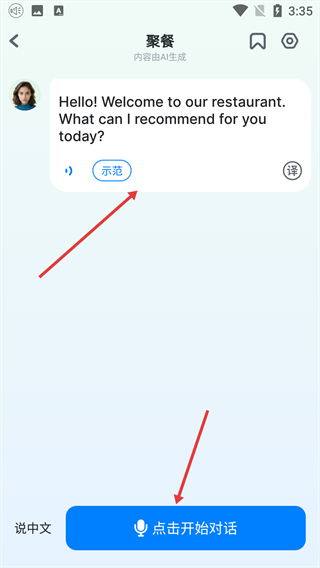 3、查看具体练习的内容,点击“开启对话”按钮。