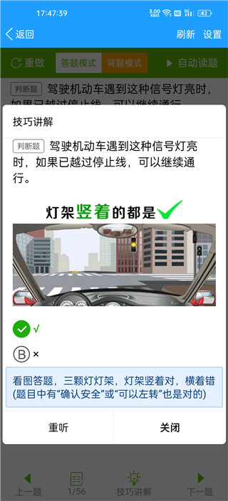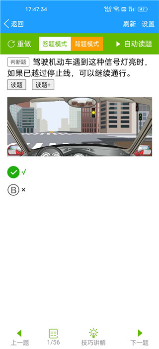 在题库使用模式上,快乐驾考最新版除了常规的答题模式,还设有背题模式,若遇到难以理解的题目,直接记忆也是一种有效的学习方式。如果您或身边的朋友近期有考驾照的计划,不妨尝试使用这款软件,它能助力您更高效地通过考试,早日拿到驾照!