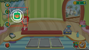 2、红框里的食物图标接订单,用收银机给顾客结账赚钱。