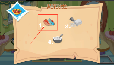 3、按1切番茄,2刨丝,3搅拌,跟着箭头做沙拉。