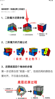 1、教程学习功能,包含从基础入门到进阶提升的体系化文字讲解与图示指导,像“二阶魔方快速还原”这类专项课程都有提供。