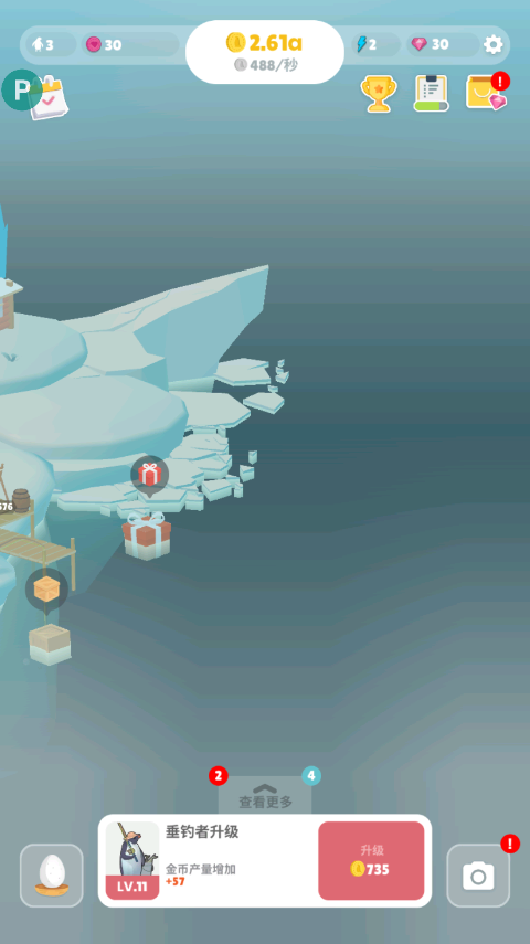 3、打造企鹅岛,不断完善的岛上基础设施,公园,游乐场,学校等都需要玩家的努力。