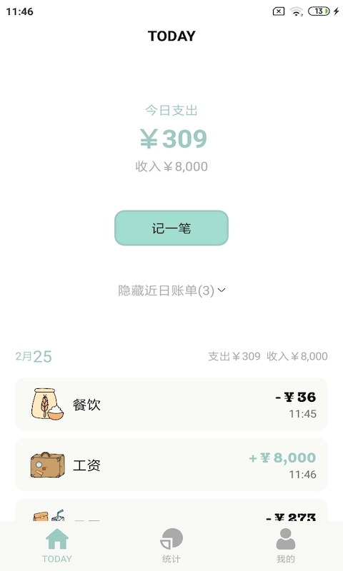 2、支持隐藏今日的账单,保护你的收支隐私;