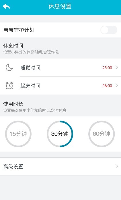 2、进入后,家长可以在这里设置休息时间,将宝宝守护计划功能关闭即可关闭休息模式。