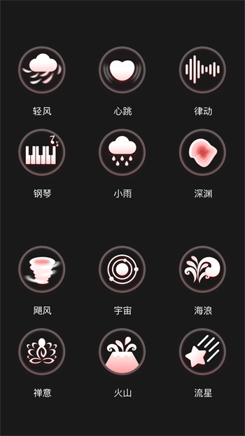 1. 提供清风、心跳、律动、小雨、深渊、飓风、宇宙、火山、流星等多种不同类型的选项,用户可根据自身需求自由挑选,从而获得别具一格的体验。