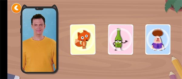3、在学习界面,我们可以点击狐狸、瓶子等卡片,听Jim介绍对应的伙伴,学习单词哦。