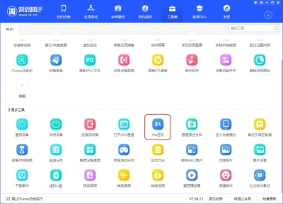 1、在爱思助手“工具箱”中打开“IPA 签名”;